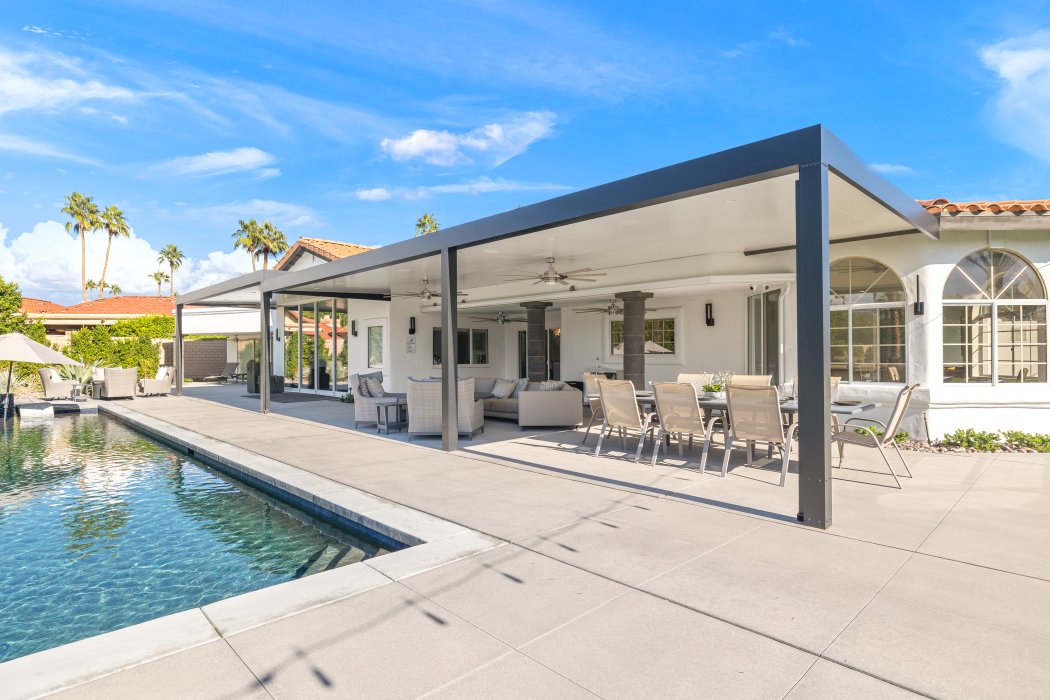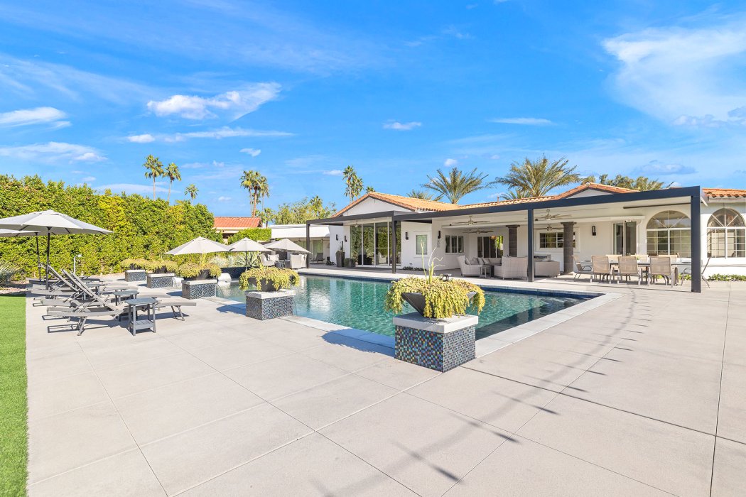 Desert Court Dreams is a privately gated, 1.25 acre compound with all the amenities you want on vacation! Pool, infinity edge spa, pickleball court, putting green, plenty of lounge chairs, firepit and outdoor dining. The interior is spacious and modern at 4200 square feet, with 4 bedrooms and bathrooms. It has walls of glass, vaulted ceilings, a fabulous kitchen, and comfortable bedrooms. With plenty of indoor and outdoor activities, this estate is the perfect combination of comfort, recreation, and entertainment.