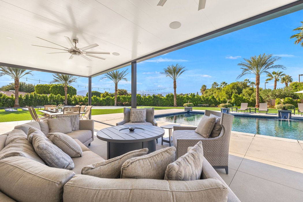 Outdoors, the massive yard is walled and gated for privacy and is your own private resort. It features a custom pool and spa with tanning shelf and infinity edge, surrounded by lounge chairs, umbrellas and other seating options. The fun continues on the pickleball court, the 5-hole putting green, or with some cornhole! Relax in the evenings in the outdoor living room with fire pit and heaters.