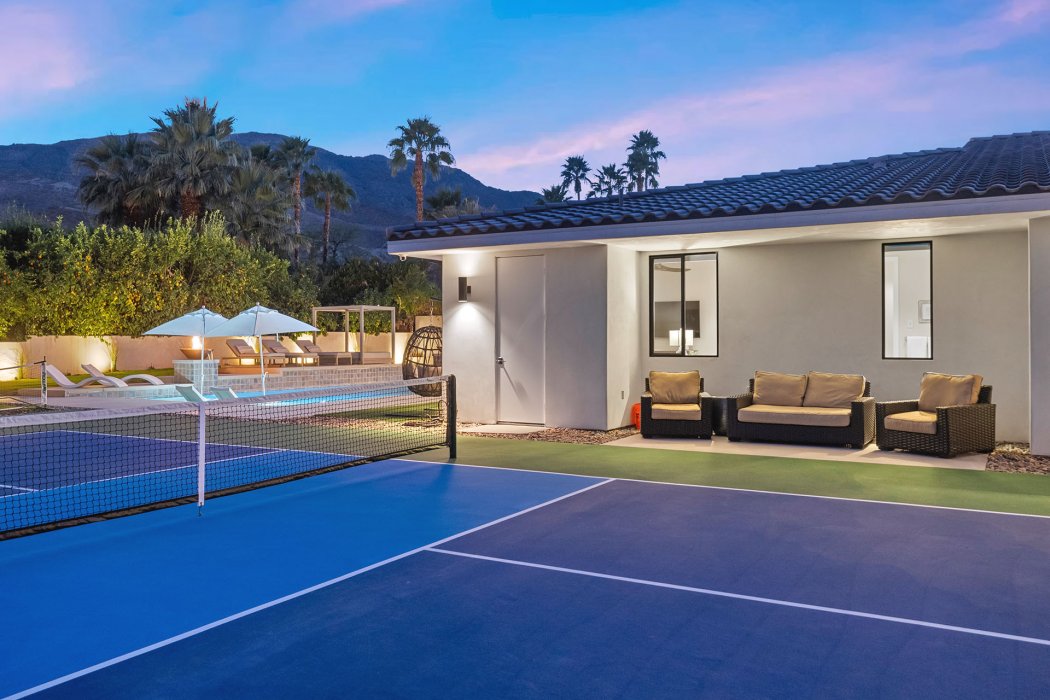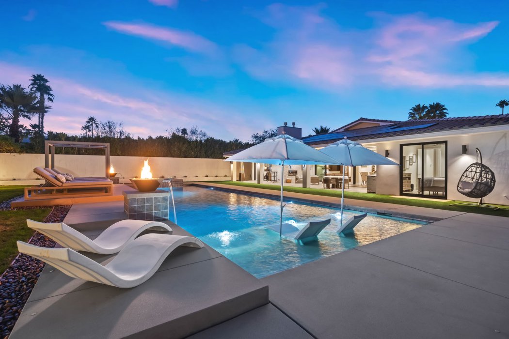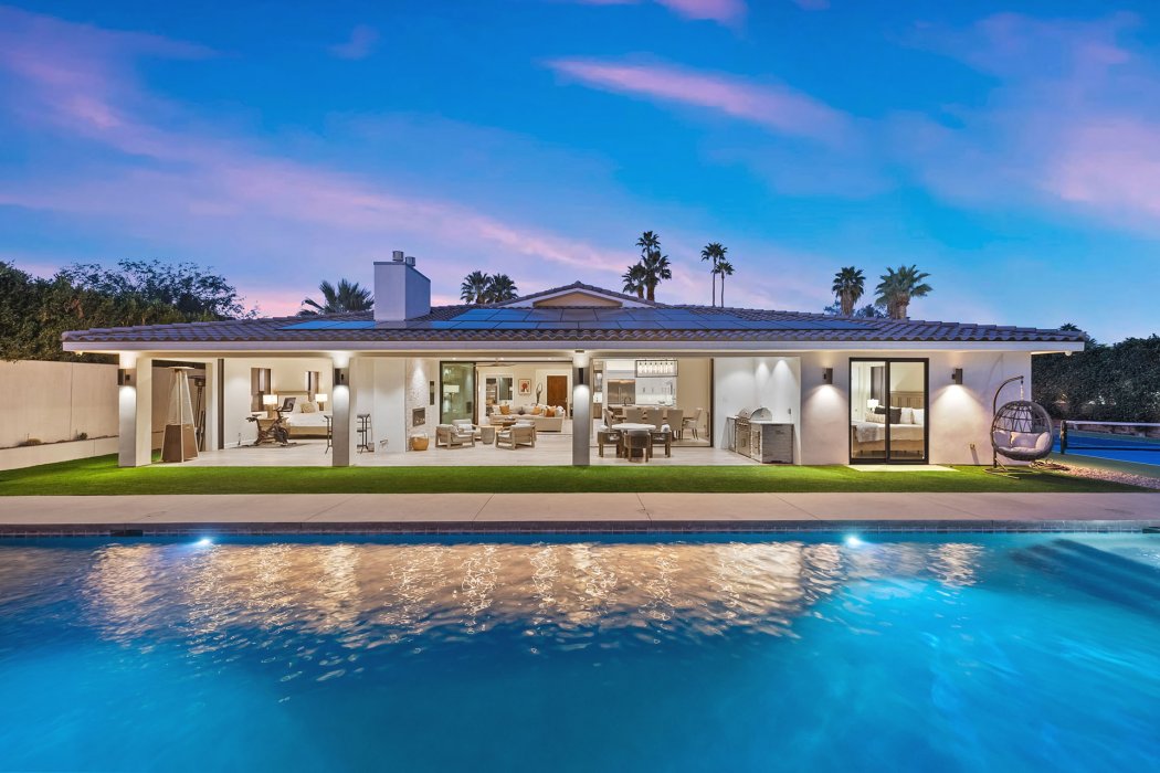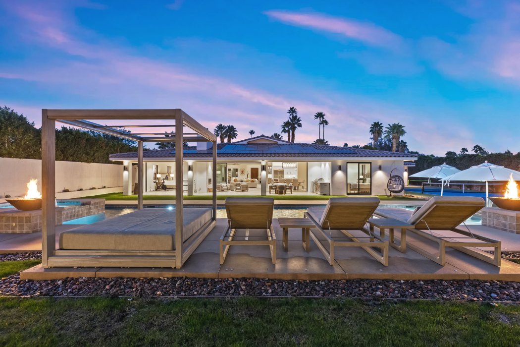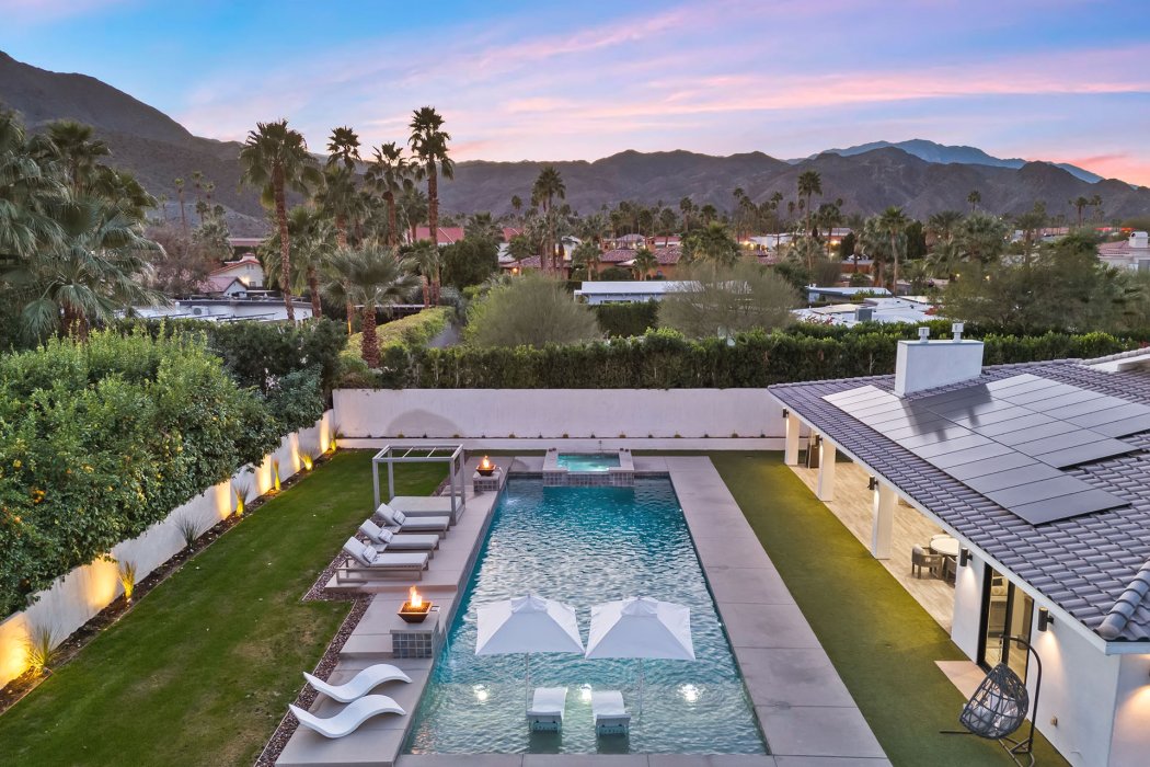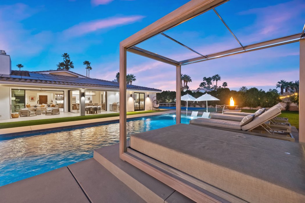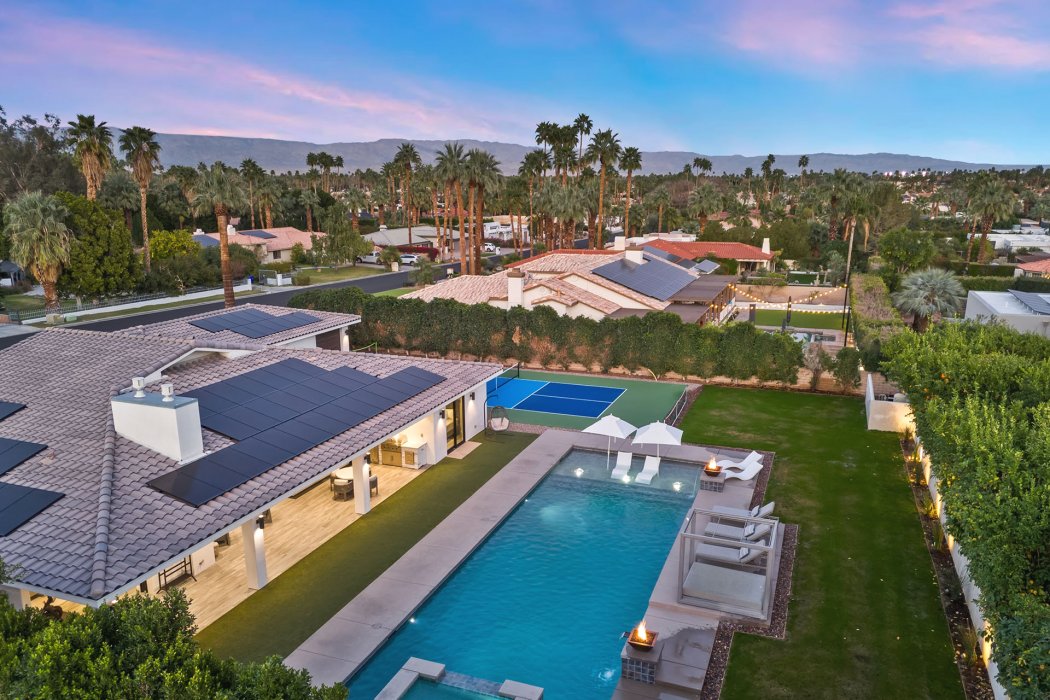 Welcome to Pura Vida, a resort-style luxury escape in the heart of Rancho Mirage where modern architecture meets desert tranquility. Outside, enjoy a private pool with tanning shelf, spa, pickleball court, multiple lounge areas, outdoor dining, BBQ, and both a fireplace lounge and an outdoor living room. Inside, this 3,700 sq ft estate features sleek designer finishes, walls of glass, a fully equipped gourmet kitchen, great room with fireplace and TV, plus 4 bedrooms and 4.5 bathrooms. Wonderful location offering easy access to world-class golf, high-end dining, and premier shopping in one of the Coachella Valley’s most prestigious communities.