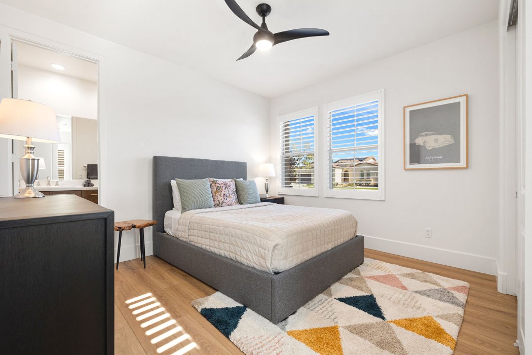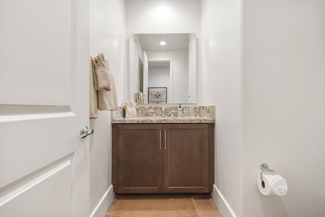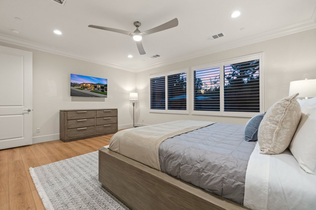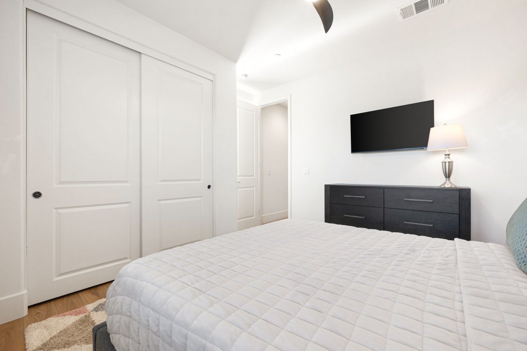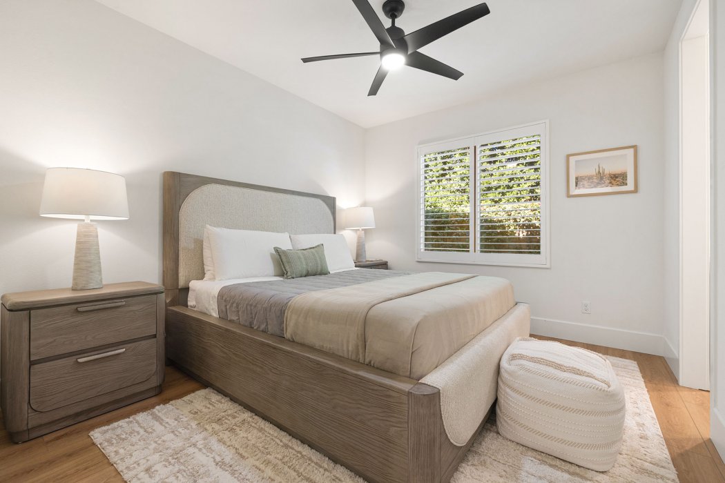 The Primary Suite features a King bed, TV, and a private en suite bathroom with a walk-in shower, dual sinks, and direct access to the yard. Casita Suite 2, located in the private courtyard, offers a Queen bed, TV, and an en suite bathroom with a shower, providing added privacy for guests. Bedroom 3 includes a King bed and TV and shares a Jack-and-Jill bathroom with a tub/shower combination. Bedroom 4 features a Queen bed, TV, and shared access to the same Jack-and-Jill bathroom, making it perfect for families or friends traveling together. There is an additional powder bath in the hall.